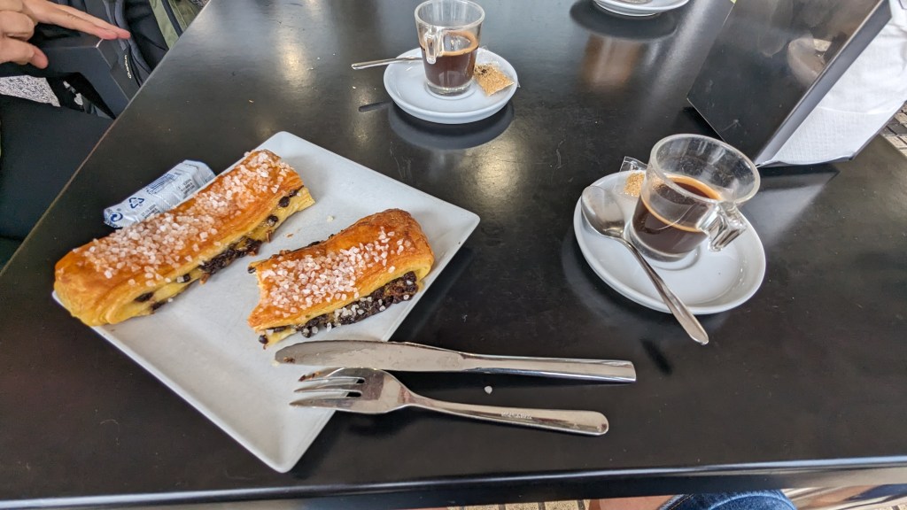 Whilst the washing machine was doing battle with our clothing we drank thimble sized, syrup like coffee and ate delicious pastries. I’ve always been a big fan of the food over here and I intend to eat as much of it as physically possible.
