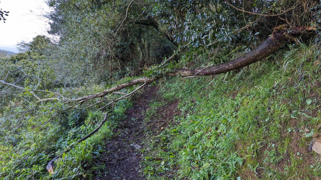 We then came across a tree that had fallen on to the path. I was worried that this might mean my Camino was over and I would have to walk back to Irun but I managed to squat down, scramble under and then Bronson gave me a hernia as I got back up again.