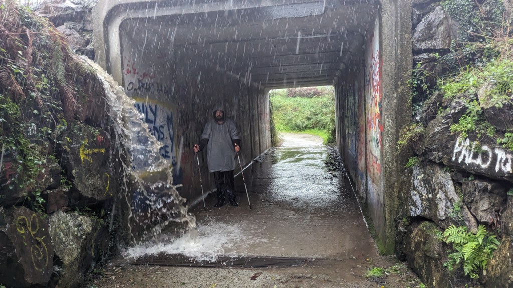 We noticed an albergue on the other side of the road that was becoming more and more inviting as the rain got heavier and heavier.ย
